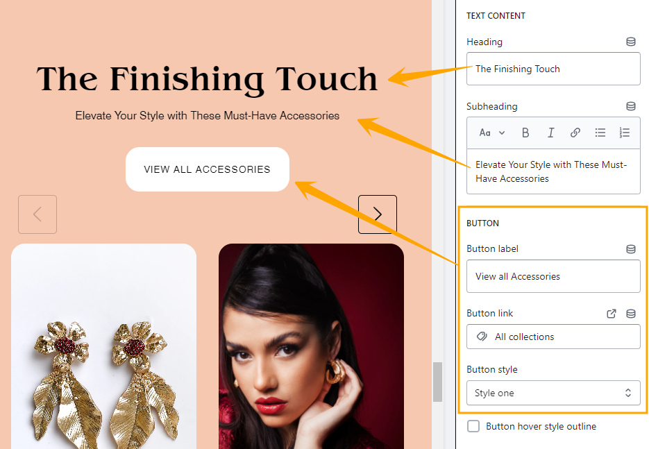 You have full control over the heading, subheading and button using the settings from the screenshot above.