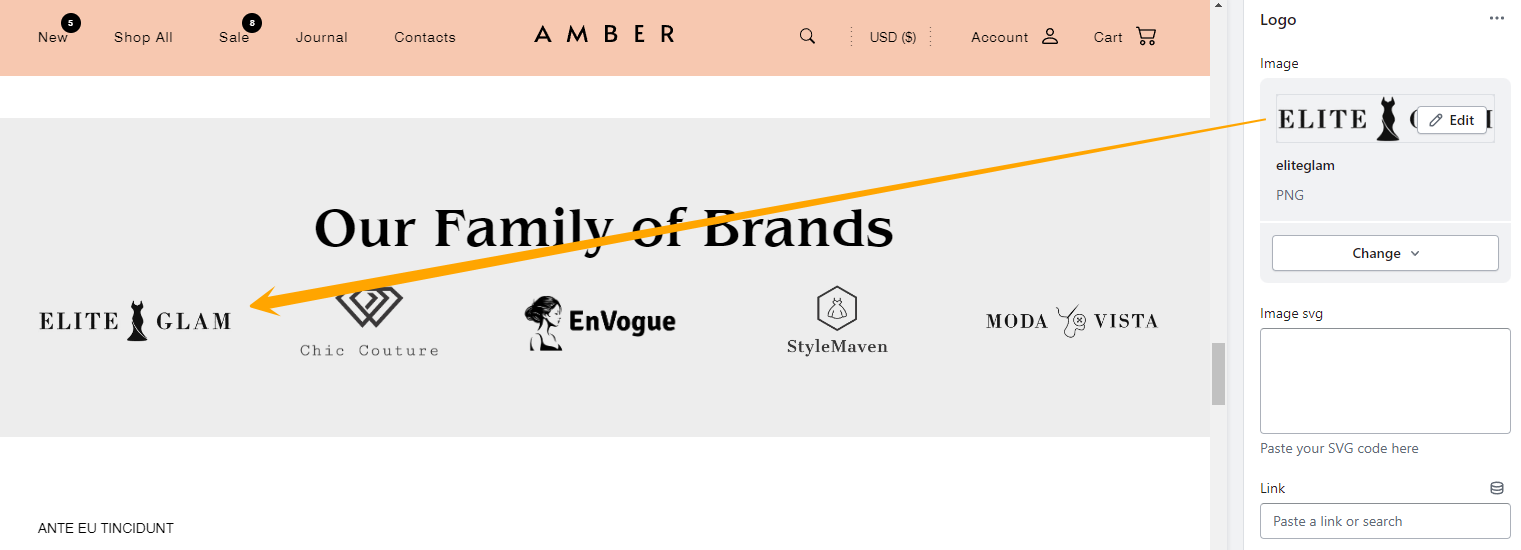 The logo can be uploaded from the image uploader, or you can paste the SVG code if you have such.